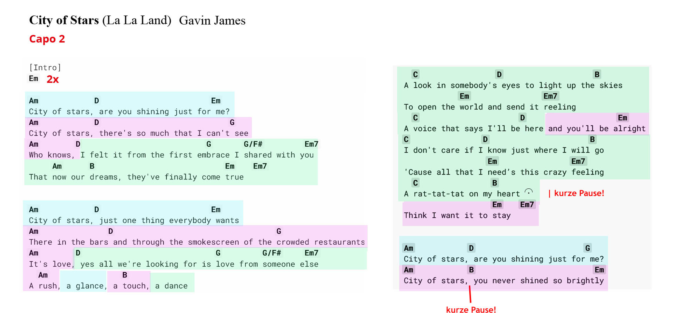 City of stars (La la land): City of stars Are you shining just for me? City of stars There's so much that I can't see Who knows? I felt it from the first embrace I shared with you That now our dreams They've finally come true City of stars Just one thing everybody wants There in the bars And through the smokescreen of the crowded restaurants It's love Yes, all we're looking for is love from someone else A rush A glance A touch A dance To look in somebody's eyes To light up the skies To open the world and send them reeling A voice that says, I'll be here And you'll be alright I don't care if I know Just where I will go 'Cause all that I need's this crazy feeling A rat-tat-tat on my heart... Think I want it to stay City of stars Are you shining just for me? City of stars You never shined so brightly